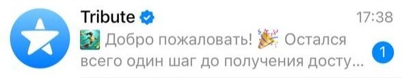Сразу после подачи заявки Вам напишет официальный бот телеграм Tribute